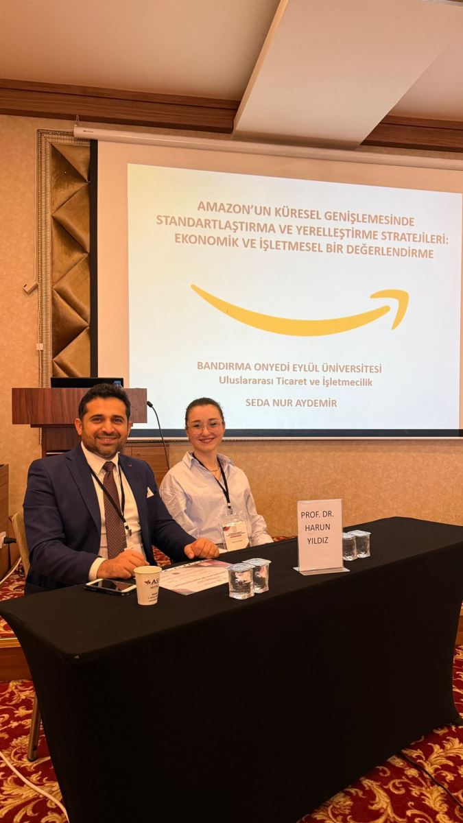 Bölüm Başkanımız Prof. Dr. Harun YILDIZ’ın oturum başkanlığı yaptığı 6th International Congress on Tourism, Economic and Business Sciences’te Uluslararası Ticaret ve İşletmecilik Tezli Yüksek Lisans Öğrencimiz Seda Nur AYDEMİR “Standardization and Localization Strategies in Amazon’s Global Expansion: An Economic and Business Evaluation” adlı bildirisini sundu. Öğrencimiz uluslararası bir kongrede ilk sunumunu başarılı bir şekilde gerçekleştirdi.
