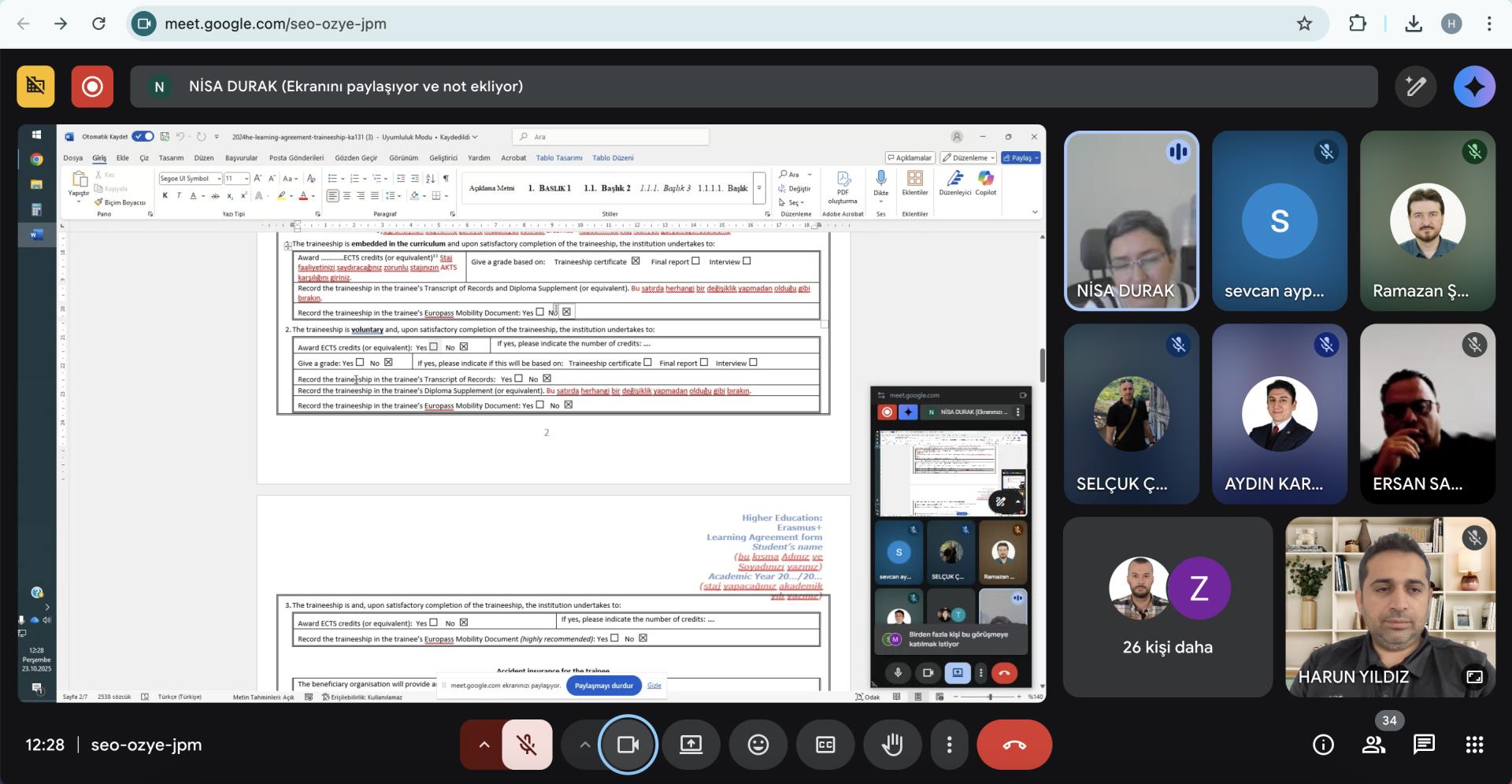 Bölüm Erasmus Koordinatörümüz Prof. Dr. Harun YILDIZ, 23.10.2025 tarihinde 12.00–13.30 saatleri arasında Erasmus Değişim Programı Koordinatörlüğü tarafından düzenlenen çevrimiçi toplantıya katılım sağlamıştır.