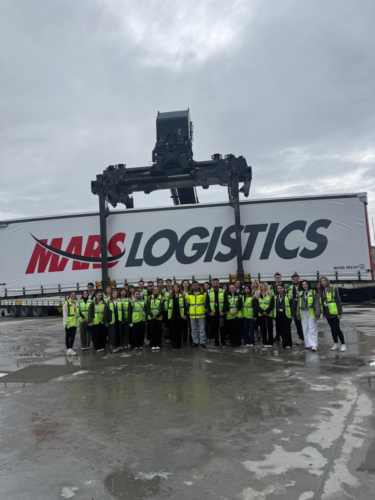Ziyaret kapsamında ilk olarak Mars Lojistik Terminali’ne gidilmiş; terminalde yürütülen faaliyetler ve intermodal taşımacılık süreçleri hakkında Operasyon Müdürü Berat EMCİ, Özüm Ezgi DEMİR ve Beyza BEYİT tarafından kapsamlı bilgilendirme yapılmıştır.
