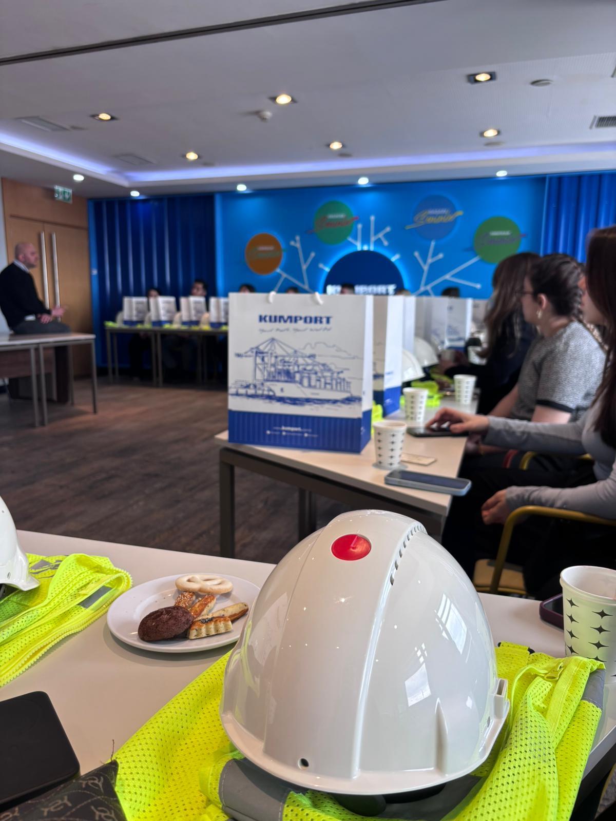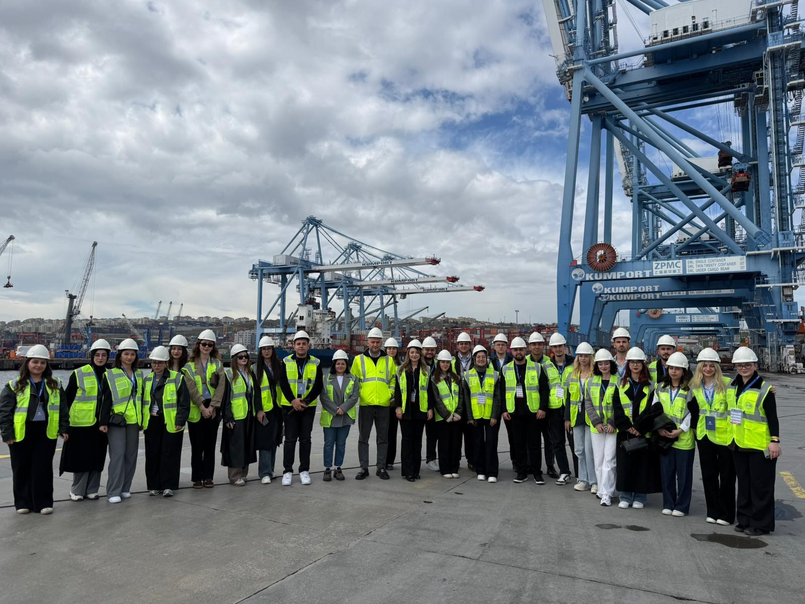 Bir sonraki durak olan Kumport Limanı’nda ise limanın tarihçesi, operasyonel süreçleri ve sunulan hizmetler hakkında Operasyon Müdürü Paris Pars tarafından bilgi aktarılmış; ardından liman sahasında yerinde inceleme yapılmıştır. Ayrıca Örgütsel Gelişim ve Kurumsal İletişim Uzmanı Cansu YILDIZ, ziyaret süresince öğrencilere eşlik ederek soruları yanıtlamıştır.