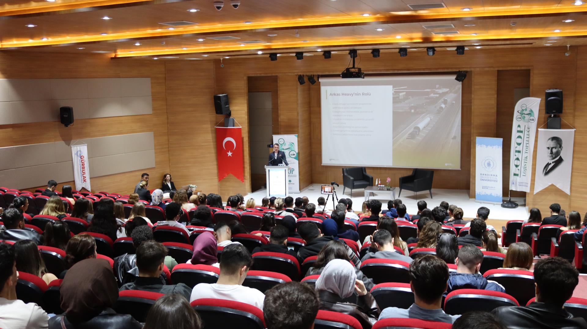Lojistik Topluluğu, 04 Kasım 2025 tarihinde Prof. Dr. Fuat Sezgin Konferans Salonunda dönemin ilk etkinliğini düzenledi. Konferansta, Lojistik Topluluğu Akademik Danışmanı Arş. Gör. H. Baycan KUŞULAR’ın açılış konuşmasının ardından Arkas Heavy Genel Müdürü Ersen GÜVEN "Ağır Yük Taşımacılığında Türkiye’nin Stratejik Rolü ve Geleceğe Bakışı" konusunda dinleyicilere değerli bilgiler paylaştı. Ayrıca etkinliğe katılan Arkas Heavy İnsan Kaynakları Müdürü Nazlı Bilgin'de öğrencilerimize sektörde kariyer yolculukları ile ilgili önemli bilgiler verdi.