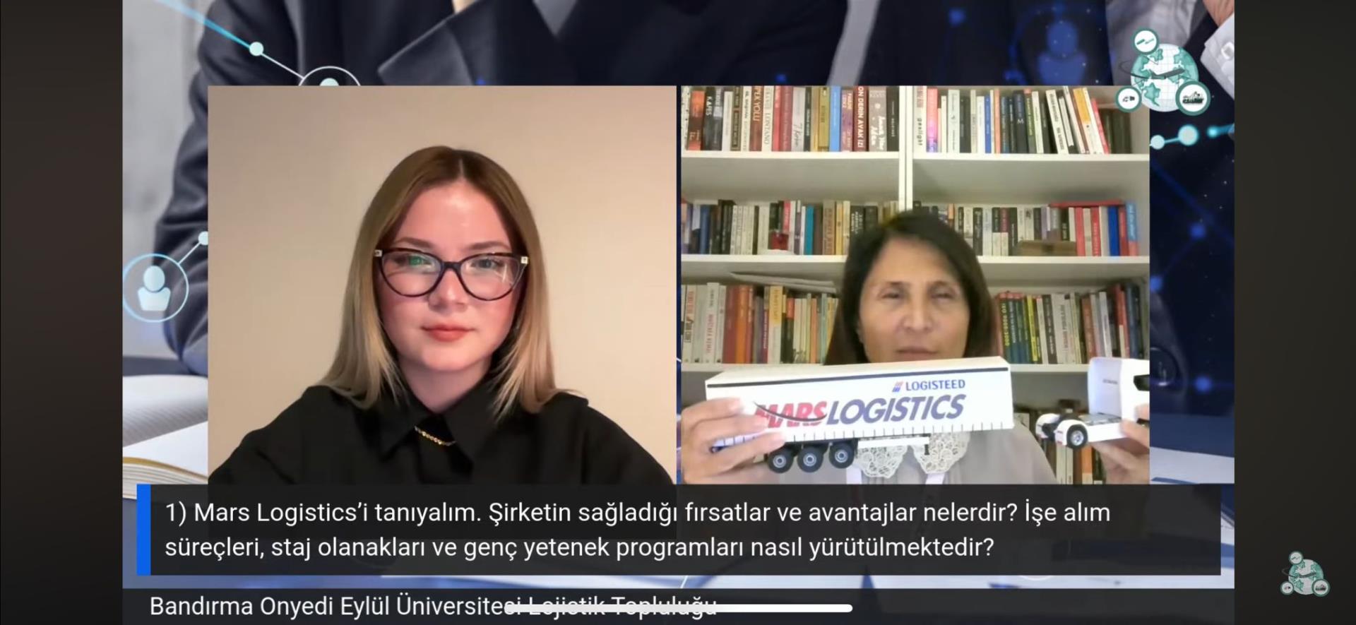 Lojistik Topluluğu'muzun "Sektöre Geçiş ve Lojistikte Kariyer Yolculuğu" başlıklı çevrimiçi etkinliğini 19 Kasım 2025 tarihinde saat 20.00'da başladı. Yaklaşık bir saat süren etkinliğin moderatörlüğünü LOTOP YK üyesi Ayşenur TEMEL üstlendi. Etkinliğin konuğu Mars Logistics İnsan Kaynakları Direktörü Nihal KANSU, moderatörün yöneltmiş olduğu soruları cevapladı ve izleyicilerin merak ettiği konuları içtenlikle açıkladı. Keyifli ve dinamik anlatıma sahip olan KANSU, sektörde edindiği deneyimleri, kariyer yolculuğunu ve geleceğin iş dünyasında öne çıkacak yetkinlikleri aktardı. Öğrencilerimiz lojistik sektörüne giriş sürecini, değişen teknolojiye uyumu ve kariyer planlamasında nelere odaklanılması gerektiğini birinci ağızdan dinleme fırsatı buldu.