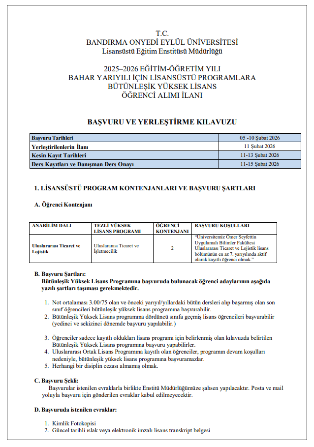 Lojistik Yönetimi Anabilim Dalı
