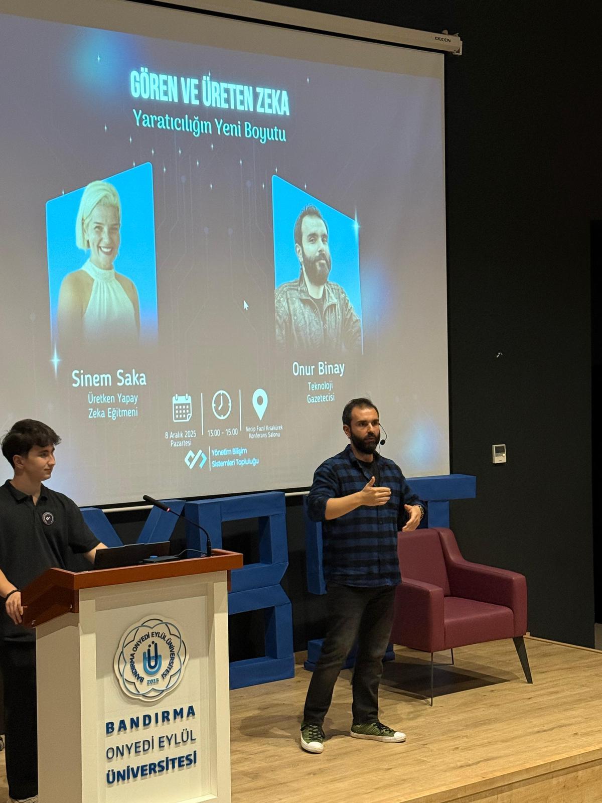 Bandırma Onyedi Eylül Üniversitesi Yönetim Bilişim Sistemleri Topluluğu tarafından düzenlenen “Gören ve Üreten Zeka: Yaratıcılığın Yeni Boyutu” başlıklı konferans, öğrencilerin güncel teknolojik gelişmeleri yakından takip etmelerine ve yapay zekanın farklı alanlardaki etkilerini çok boyutlu biçimde değerlendirmelerine olanak tanıyan nitelikli bir akademik etkinlik olarak gerçekleştirilmiştir.