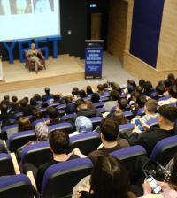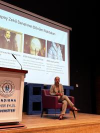 Etkinliğin ilk bölümünde Sn. Sinem SAKA, yapay zekanın görsel üretim kapasitesi, yaratıcı süreçlerdeki yeni kullanım alanları ve üretken yapay zeka araçlarının sunduğu olanaklar üzerine kapsamlı değerlendirmelerde bulunmuştur. Öğrencilerden gelen sorular doğrultusunda özellikle tasarım, medya ve içerik üretiminde yapay zekanın dönüştürücü etkisi uygulama örnekleri üzerinden ele alınmıştır.