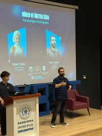 Konferansa Üretici Yapay Zeka Eğitmeni Sn. Sinem SAKA ile Teknoloji Gazetecisi Sn. Onur BİNAY konuşmacı olarak katılmış; etkinlik soru-cevap odaklı interaktif bir formatta yürütülerek öğrencilerin sürece aktif katılımı sağlanmıştır.