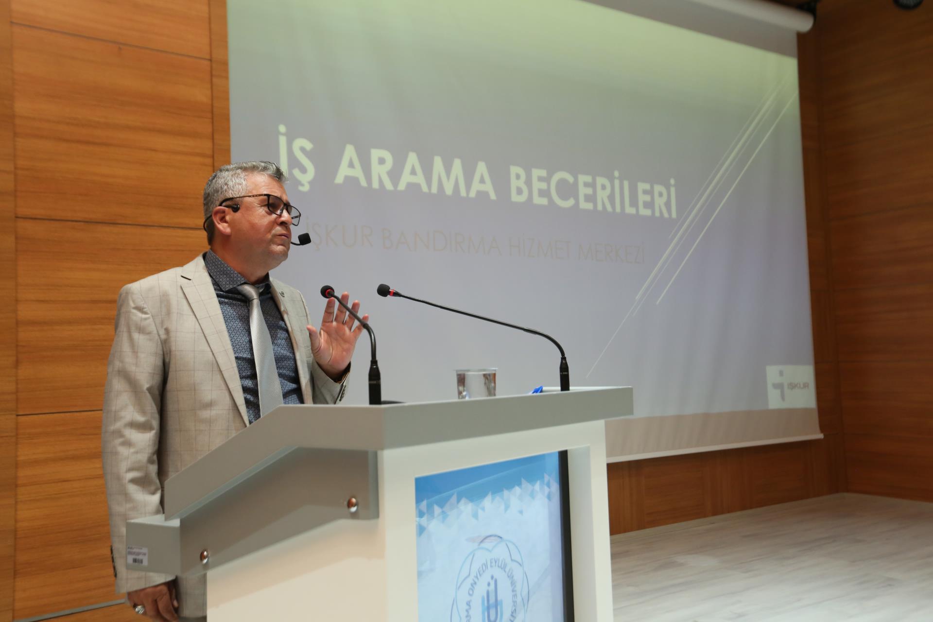 "Türkiye Yüzyılının Başında" seminer serimiz kapsamında Ömer Seyfettin Uygulamalı Bilimler Fakültemiz tarafından ve Yönetim Bilişim Sistemleri Topluluğu katkılarıyla Bandırma Çalışma ve İş Kurumu Hizmet Merkezi Müdürü Sadık Gündoğan’ın konuk olduğu “İş Arama Becerileri” konulu konferans düzenlendi.