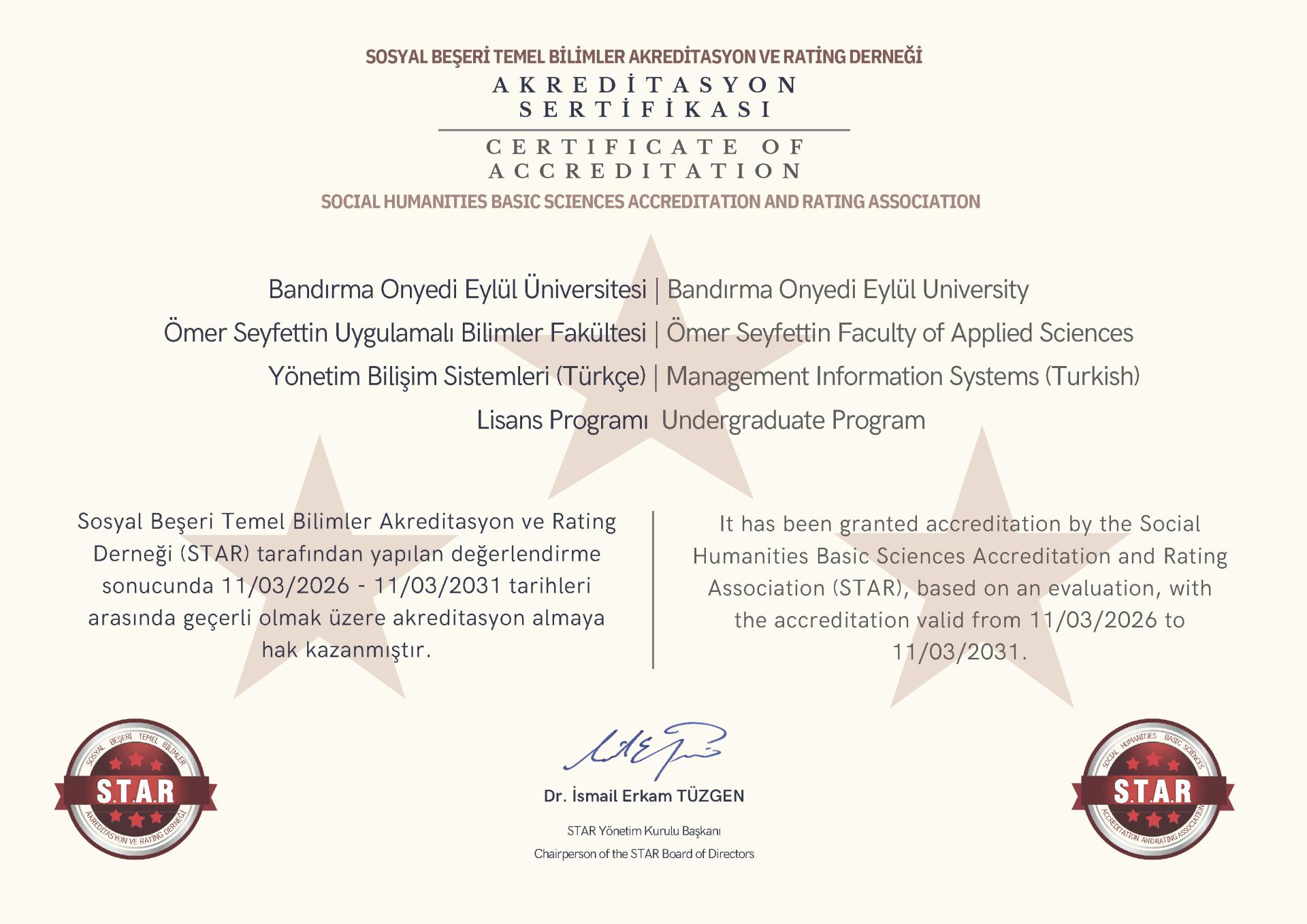 Yönetim Bilişim Sistemleri Bölümü olarak; kalite, katılımcılık ve yenilikçilik ilkeleri doğrultusunda eğitim-öğretim faaliyetlerimizi sürekli geliştirmeye, paydaş odaklı karar alma süreçlerini güçlendirmeye ve öğrencilerimize çağın gerekliliklerine uygun bir akademik ortam sunmaya kararlılıkla devam etmekteyiz.